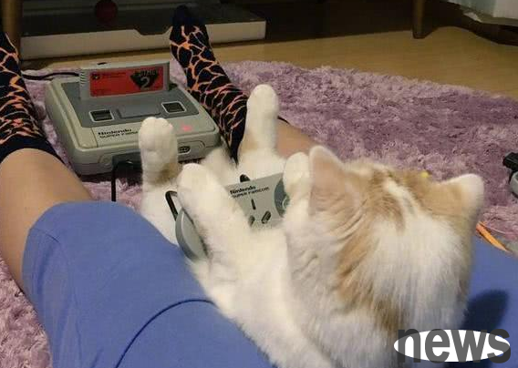 I saw the cat lying on her boyfriend, holding a game console in her paws, playing games happily together. The picture looked very harmonious, and they didn't even notice that the mistress was back!