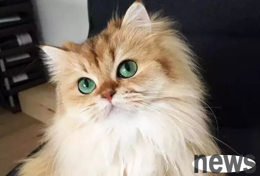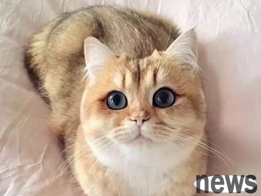 The golden British shorthair cat Pumpkin, with a pair of perfect, traceless and smooth lines of bright eyes