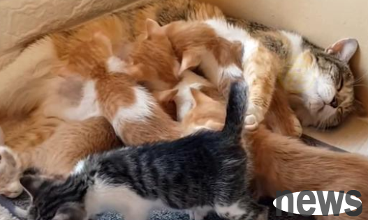 After giving birth, the cat mother and her family were taken home and taken care of by the caretaker. Feeding 7 kittens is a big project. The mother cat is either feeding the kittens or on the way to feed the kittens every day. Every kitten is fed by it to be healthy and fat. I have to admit that, no matter people or animals, being a mother is really hard!