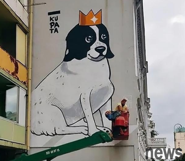 Not only that, after the mayor of Batumi learned about such a cute dog, he specifically approved the graffiti of a giant portrait of Kupata on a local building.