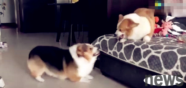 A netizen recorded the whole process of the quarrel between two corgis at home. But after watching the video, everyone was amused by the two dogs and laughed. One day, the two corgis didn't know what was going on. One sat down on the sofa and the other was on the ground. Lying down, the yellow corgi bared its teeth and started to threaten the black corgi. As a result, the black corgi was not to be outdone, and took an active offensive position. It stood up, bared its teeth, and barked at the yellow corgi. The two dogs were frightening each other, and it seemed that they were preparing to fight.