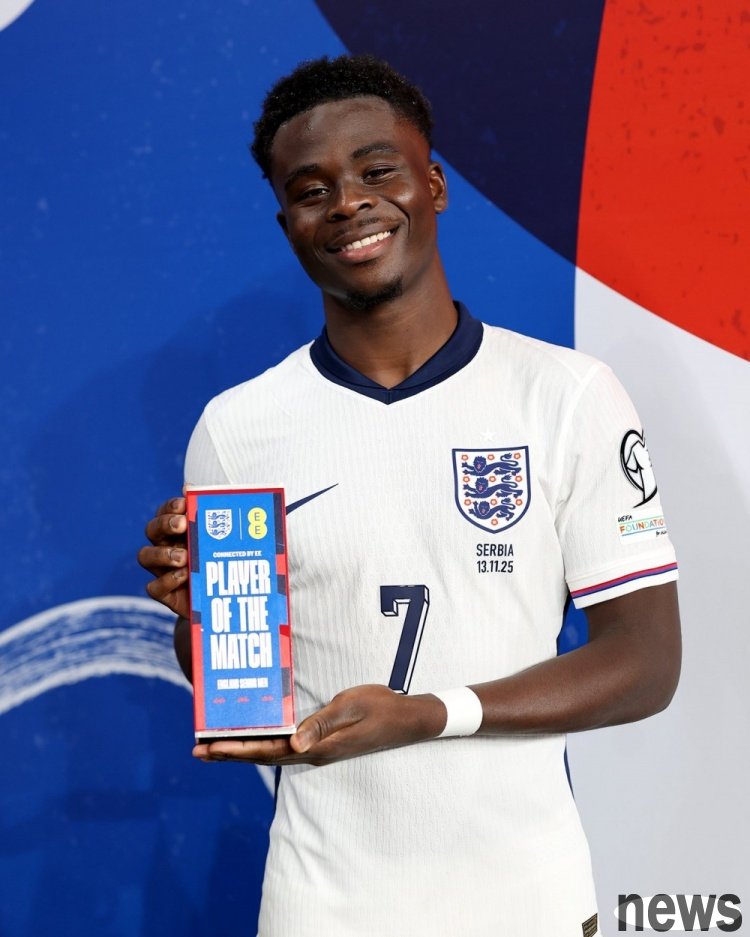 Saka played the entire game for the England team and scored a goal. He was elected the best player in the England team in this game.