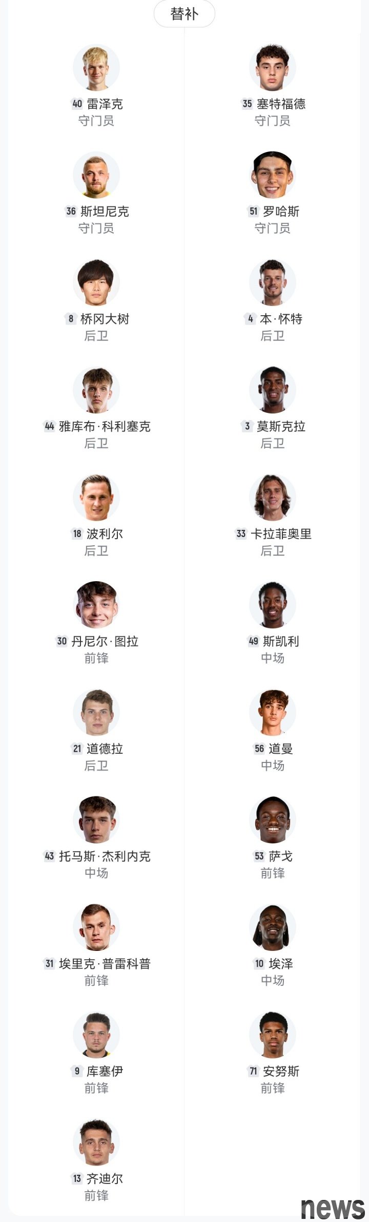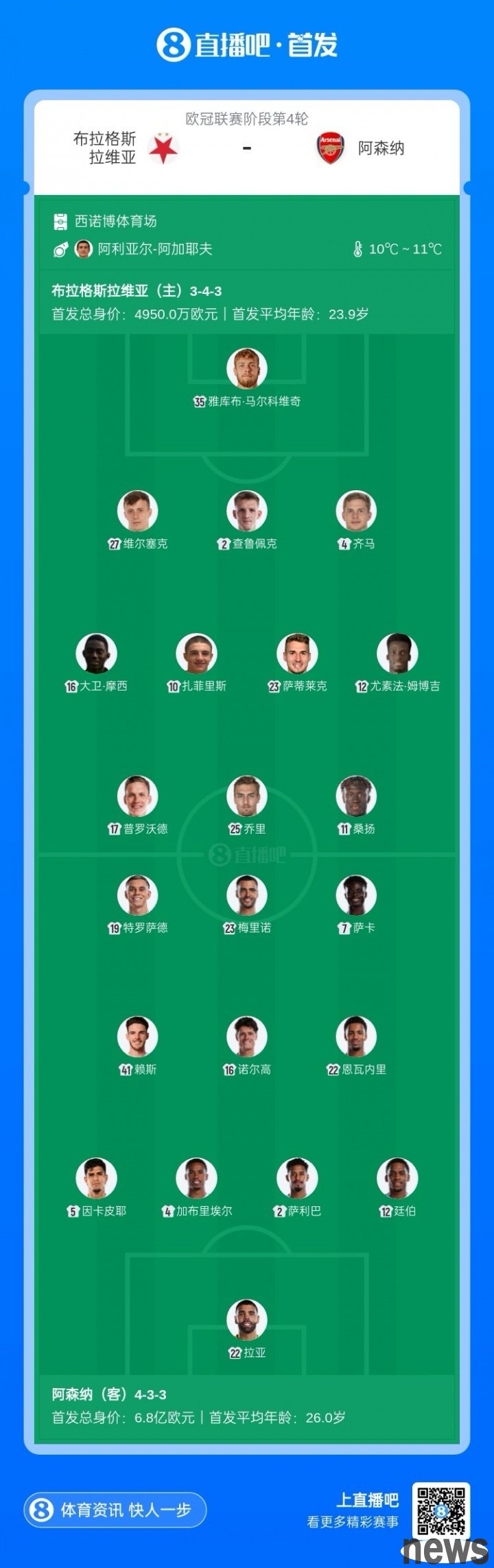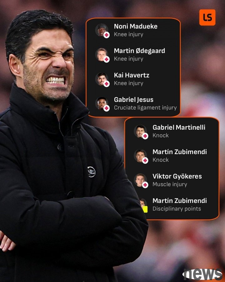 Arsenal is currently experiencing a wave of injuries. Only Trossard and Saka are healthy among the six forwards of the first team, and they will all start tonight. Midfielder Merino once again guest-stars as center, and captain Odegaard is also absent due to injury; but the good news is that the "eight kings" of the defense are currently healthy, ensuring the depth of the Gunners' defense.