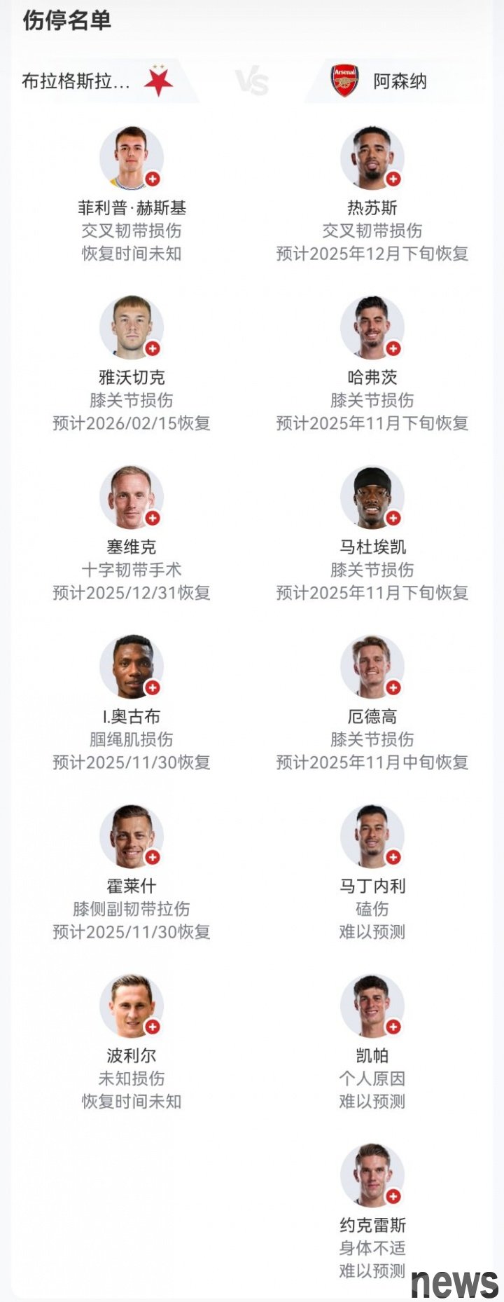 Arsenal's injury status:
